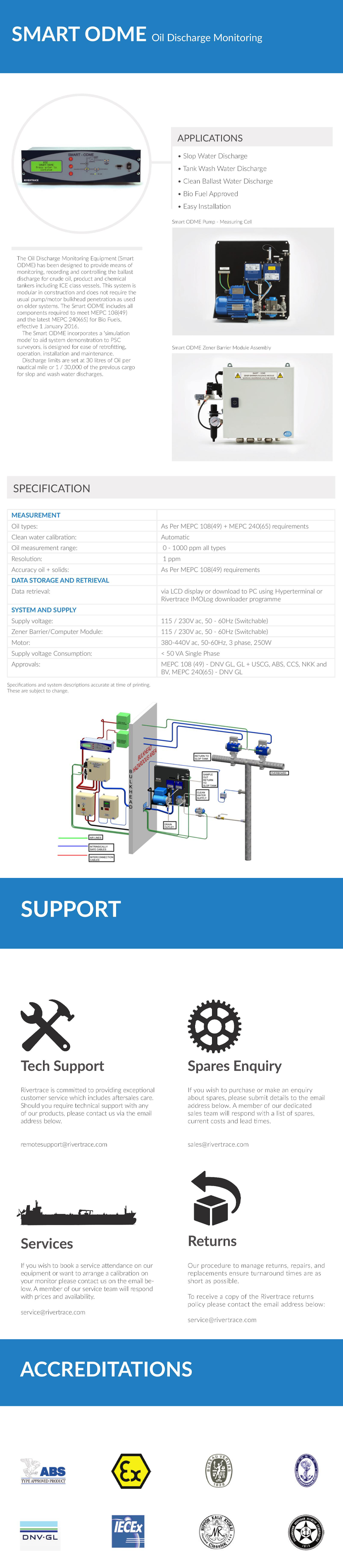Bio fuel approved ; Easy installation; Modular in construction and no need of usual pump/motor bulkhead penetration as used on older systems; Incorporates a 'simulation mode' to aid system demonstration to PSC surveyors |