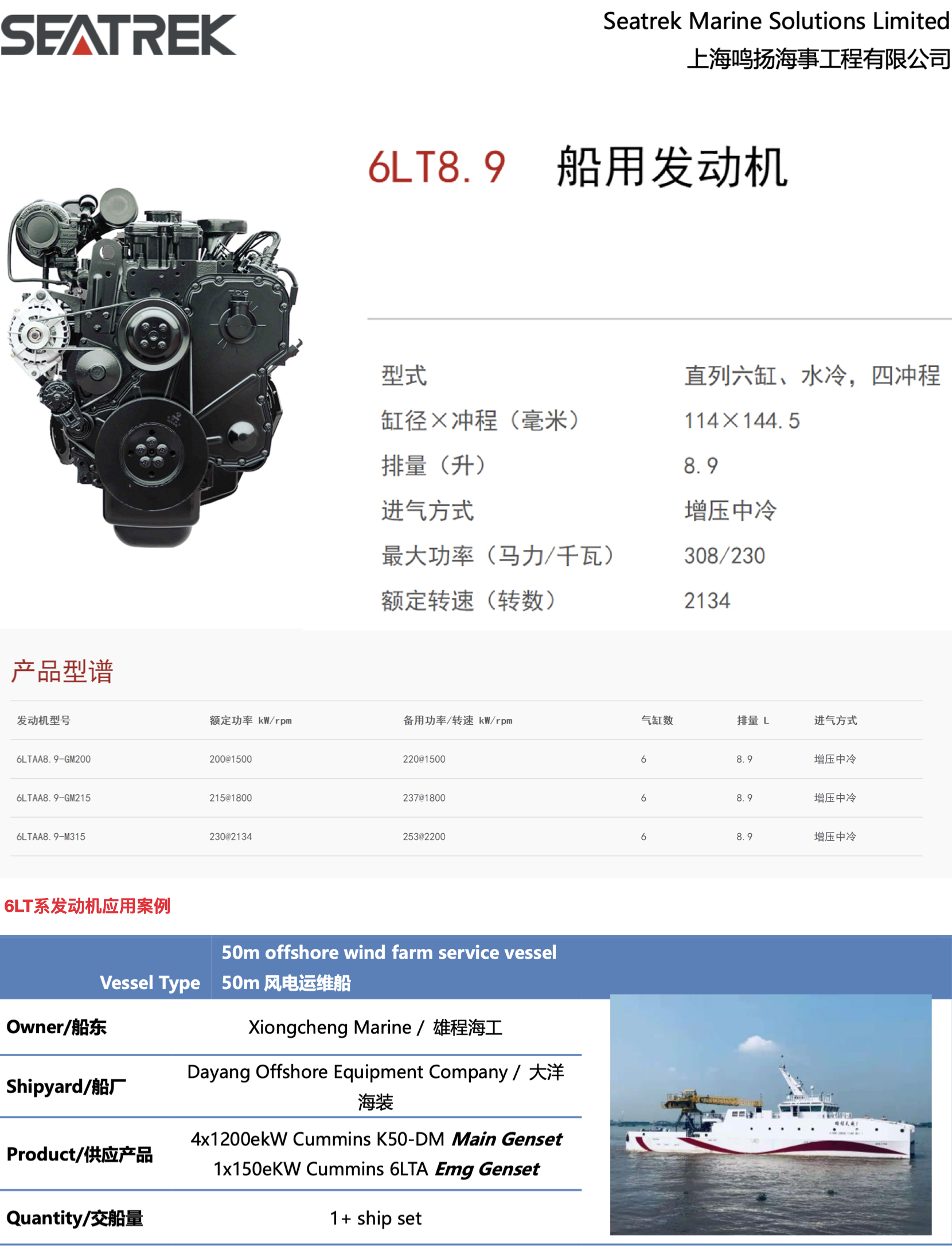 平臺 6LT8.9系列200~230KW船用發動機