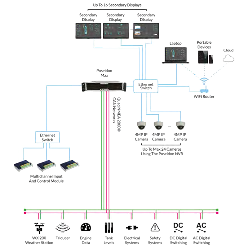| Wi-Fi熱點: | 支持 | 供應范圍: | 系統主機單元;顯示器;CCTV攝像頭;以太網開關及路由;控制模塊;Poseidon NVR(如需采集影像) |
